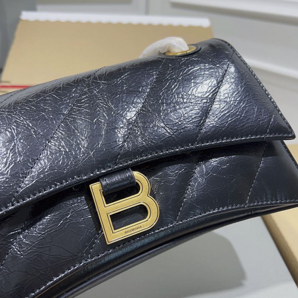 Crush Chain Hourglass Bag(Black/gold)