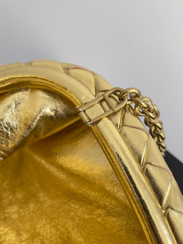 Lauren 1980 gold ClutchDiscover the BOTTEGA VENETA Lauren Clutch – a timeless chain-handbag blending 1980s inspiration with modern elegance. This versatile piece effortlessly elevates any look for day or night. The detachable metal chain offers multiple carrying options, from chic handheld to stylish shoulder bag. Perfect for fashion lovers seeking sophisticated accessories that transition seamlessly between occasions. A must-have statement piece combining vintage charm with contemporary functionality.