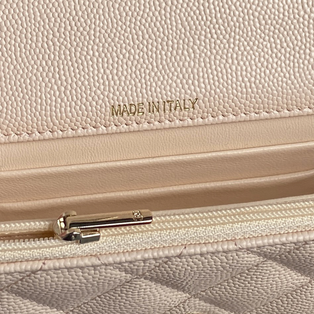 exquisiteness and elegance. Whether it is the iconic diamond pattern or the double C logo, it is irresistible. It can be perfectly matched for formal occasions or casual travel. If you like it, go for it. Size: 14×18×3cm